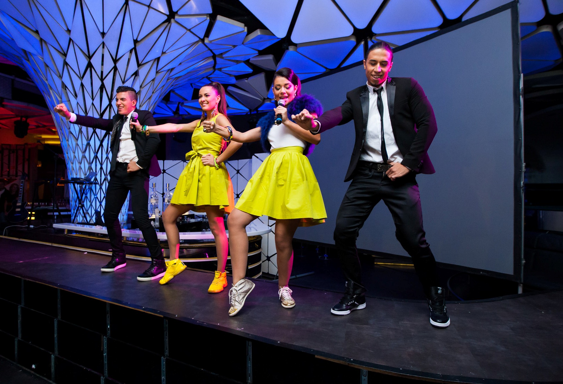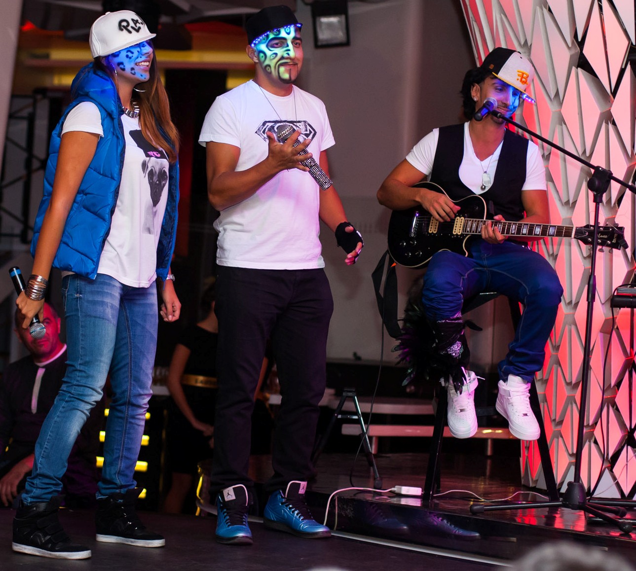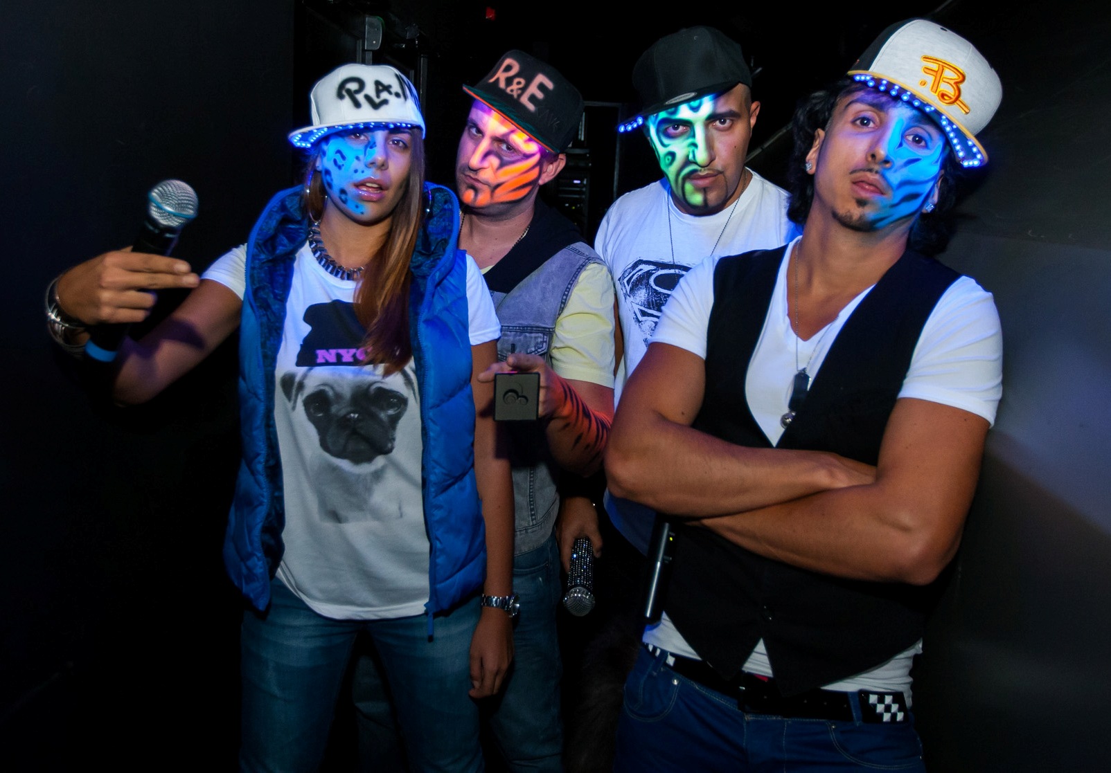 За премиерната вечер – също като в клипа, Румънеца, Енчев, НАСО и Пла.Ми бяха изрисувани със специален флуорисцентен грим, осветяван от специални лампички, монтирани под козирките на шапките им, което им придаде страховит вид.