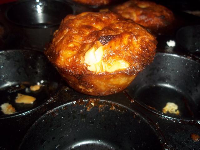 Наронете сиренето и го добавете към сместа. Сипете с намазнени форми за мъфини и печете в предварително загрята фурна на 180 градуса.