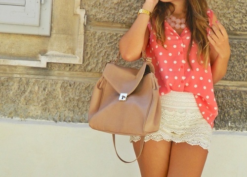 Това лято една от актуалните тенденции при точките е ретрото. Става дума за рокли, блузи и поли в дискретен винтидж стил, които или са изцяло в този десен, или само загатват за него – при отделните детайли например. Характерни за този тип дрехи са романтичните допълнения: волани, буфан ръкави и ръкави тип „камбанки“, панделки вместо колани и т.н. Декоративните цветя са перфектният , аксесоар към винтидж облеклата, като няма абсолютно никакъв проблем къде точно ще бъдат поставени – на колана, ръкава, деколтето или в косата. Важното е да бъдат в основния нюанс на дрехата.