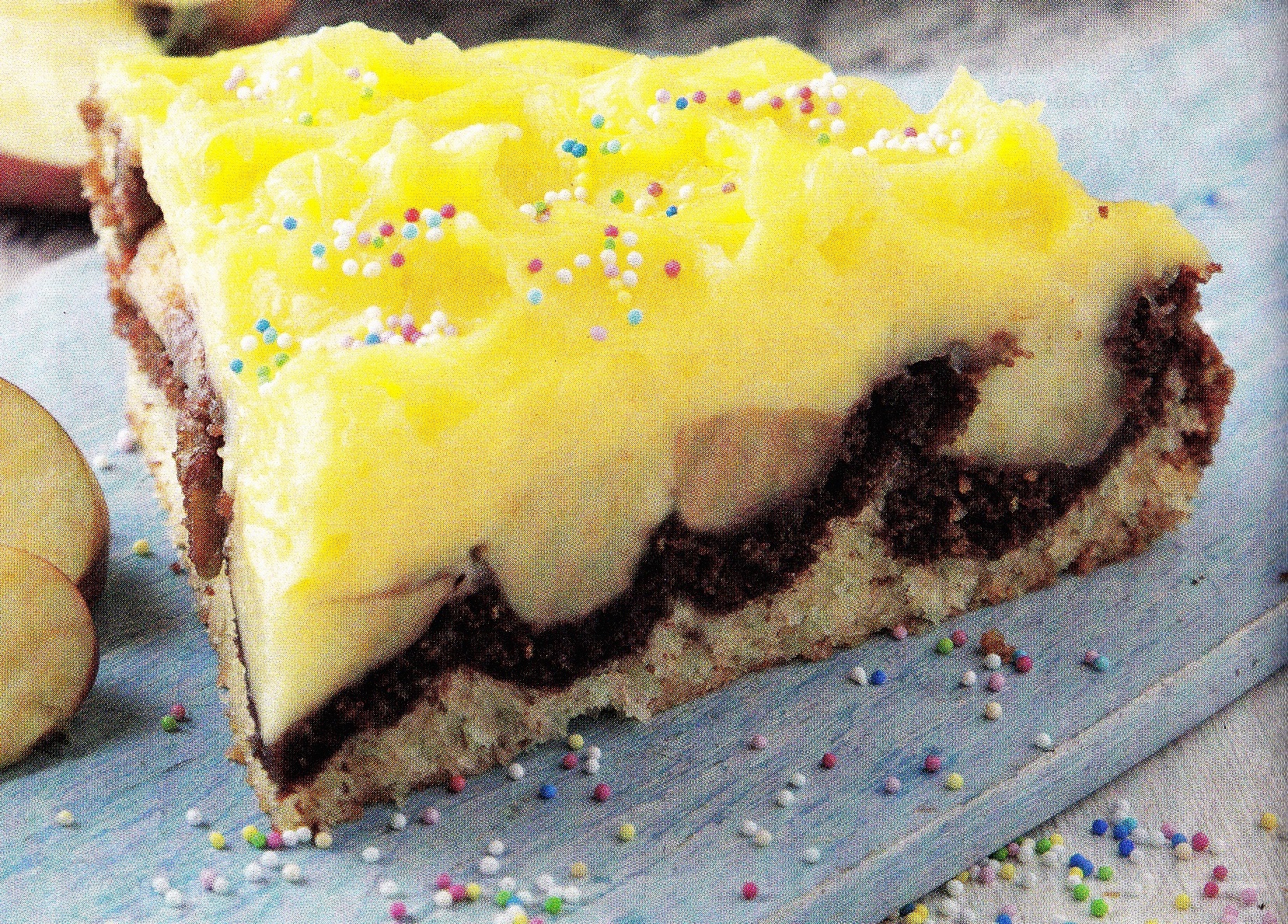 - Сипете какаовото тесто върху бялото, (сн. 4)