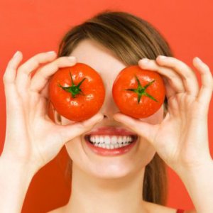 Класическата маска е от нарязани доматени кръгчета, наложени на почистено лице за 15 минути.