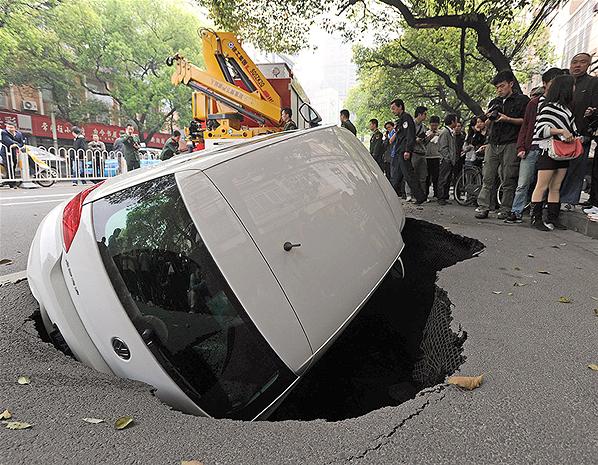 Тази дупка в пътя може да е създадена, за да убива скоростта по него, а може да е изпитание и за лудите, които карат тук – нека знаят какво ги чака!