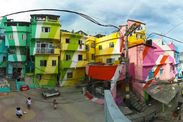 В Санта Марта – бедняшки квартал в Рио де Жанейро, е реализиран проект за ефектно боядисване на сградите. Тридесет и четири къщи са боядисани в ярки нюанси, предназначени да изглеждат като лъчи, които се разпространяват от къща на къща.