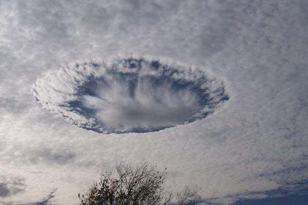 Това е рядко метеорологично явление и се нарича skypunch. Когато хората виждат това, те мислят, че идва краят на света. Ледени кристали се формират над перести облаци на висока надморска височина, а след това падат надолу като пробиват дупка в облачната покривка.