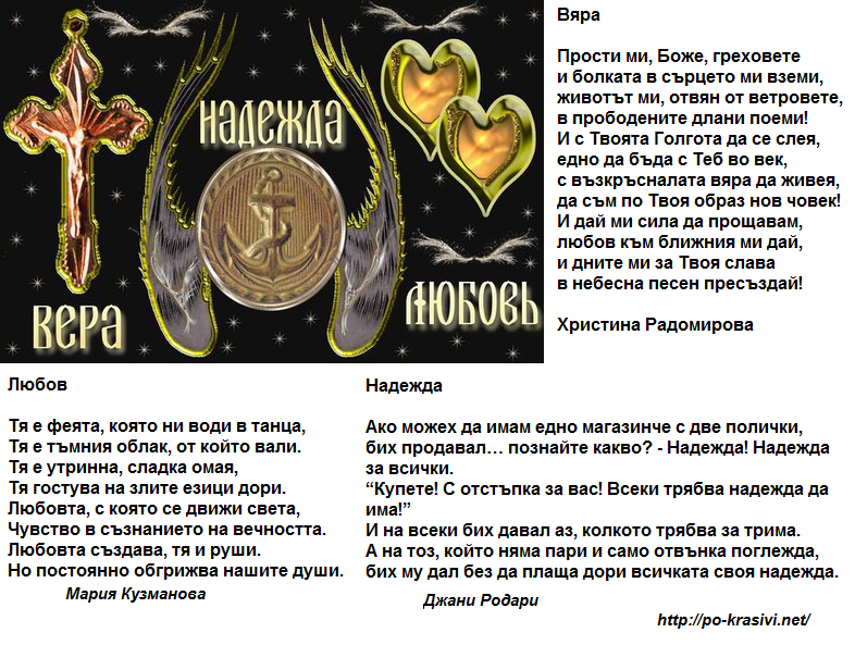 Честит имен ден на Вера, Вяра, Люба, Любов, Любен, Любомир, Любомира, Надежда, Надка, Надя, Севда, Севдалина, София, Софка, Ставри.