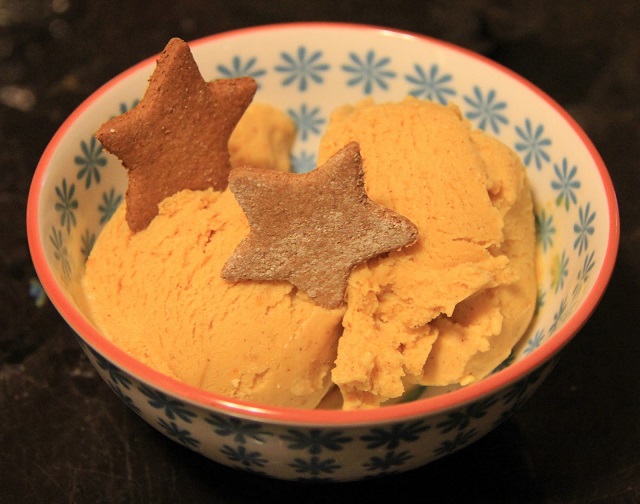 Оригиналните украси и обичайните допълнения са истинска мания в сладоледените салони и вие със сигурност можете да ги приложите и в домашни условия. Ето някои идеи за гарниране на домашния сладолед от тиква с подправки: сушени плодове като стафиди, боровинки или нарязани кайсии; накълцани запечени орехи; глазура от кленов сироп или смлени джинджифилови бисквити.