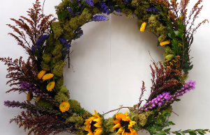 Венецът от билки и цветя не е трайна украса, но рамката, върху която е аранжиран, се прави лесно и може да се използва многократно. Когато композицията започне да увяхва, винаги можете да я замените с друга.
