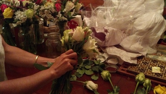 - пет големи, широки листа, с които да се огради букетът (по желание)