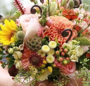 - цвете/цветя с подчертана символика, за средата (традиционните букетчета имали едно-единствено цвете в центъра, най-често роза, но може да се използват и няколко рози)