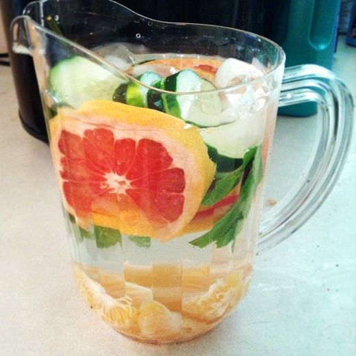 Измийте добре грейпфрута, мандарината, краставицата и листата от мента. Нарежете ги и ги сложете във водата. Оставете да киснат 2 часа и пийте тази вода през целия ден. На другата сутрин направете нова порция. Всеки ден трябва да правите напитката, а не от предния ден, защото се получава ферментация. Заедно с пиенето, яжте и парченцата грейпфрут и мандарина. Краставицата и ментата можете да изхвърляте, ако не обичате да ги дъвчете. Но е желателно да изяждате всичко. Така ще имате и по-малко апетит за храненето, което следва.