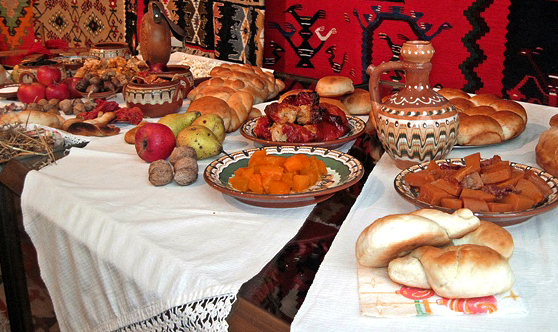 На трапезата сложете нечетен брой ястия – питка с паричка, боб чорба, туршия (слагат се лук и чесън на глави за здраве), сарми с кисело зеле, ядки (задължително орехи с черупките, а като се счупят се гледа дали имате здраве с хубава ядка), плодове, баница с тиква, ошав, мед. Винаги можете да приготвите и други постни неща – чушки с доматен сос и чесън, кьопоолу и други.