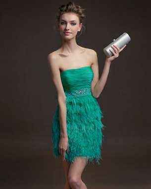Дрехите, украсени с пера и ресни, напомнят за 20-те и от доста време не излизат от мода за официални вечери. Те се пришиват на женствени рокли под дължината на коляното, допълнени от украшения в ретро стил и авангардни обувки.