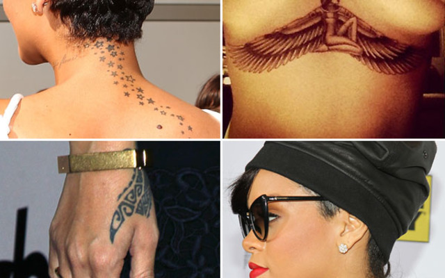 Барбадоската красавица е един от най-яростните татус маниаци в Холивуд. Тялото й е осеяно с мастило. На тила й има звезди, на гръдния й кош има египтянка с крила, няколко надписа, череп с кости и панделка на единия глезен, индианец на другия, звездичка върху лявото ухо, дантела на дясната китка, направена по маниера на маорите – с чук, мастило и длето, „любов“ на средния пръст на лявата ръка, племенна рисунка на китката, „шиишт“ на десния показалец и прочие…. Както се казва – най-добрата татуировка тепърва предстои.