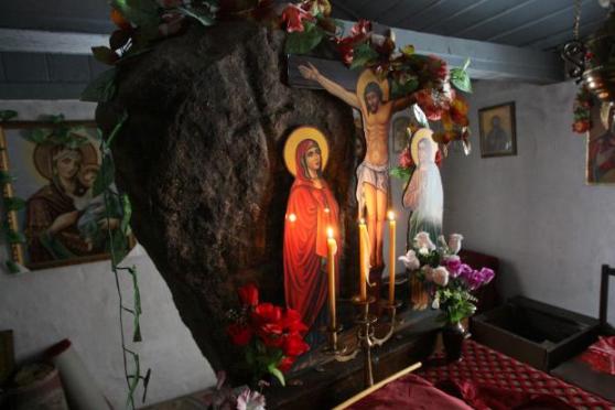 Върху рицарския трофей са изсечени йерусалимски кръстове, а във всеки ъгъл на големия кръст има издълбани в камъка по-малки кръстове, в чест и слава на четиримата евангелисти. Питам свещеник Антим как си обяснява чудесата, които върши камъкът в олтара: „Има много мъка по земята. Хората ходят по доктори, но като не могат да намерят помощ отникъде, идват да търсят опора в Бога. Молитвата и вярата лекуват. Трябва да търсим Бог, за да ни даде своята милост. Тук идват постоянно страдащи да им чета молитва за здраве, да направят курбан преди тежка операция. И чудото става.“