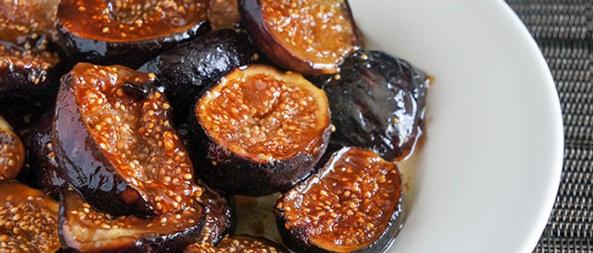 Загрейте тиган на умерен огън. Добавете маслото (достатъчно да покрие дъното леко) и се загрява. Поставете смокините в тигана и се поръсва със сол. Пържете, докато ръбовете са запечени леко. Поръсете захар и разбъркайте още една минута. Поставете в купа и поръсете с меласа от нар (рецептата по-долу). Сервирайте веднага.