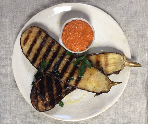 Сложете ½ чаша печени бадеми, ½ чаша настърган пармезан (или кашкавал) и 1 скилидка чесън в кухненски робот и пулсирайте, докато се нарежат ситно. Добавете 5 печени и белени червени чушки, ¼ чаша слънчогледово олио, 1 супена лъжица червен винен оцет, 2 супени лъжици галета и ¼ чаена лъжичка сол. Пулсирайте отново. Сервирайте по една малка купичка от този сос на всеки в чинията, за да топите хляба и да си облизвате пръстите!