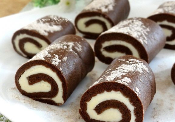 Охладеното руло нарежете на парчета, поръсете с пудра захар и канела и поднесете.