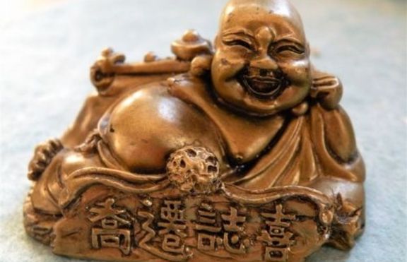 Източното учение обаче твърди, че освен щастие Смеещия се Буда носи и благосъстояние. Този символ се поставя върху каси, върху бюра, дори в сейфове, за да привлича повече пари в живота. Ако искате да го използвате за такава цел, фън шуй специалистите съветват да изберете такава статуетка, на която е изобразен да носи купа или торба с пари или е седнал върху златни кюлчета или китайски монети. Освен това не е случайно и че често се изобразява с гол корем. От една страна, той символизира изобилието и се вярва, че благодарение на такава фигура домът ви никога няма да остане без храна и без средства. Според източното поверие, ако си намислите желание и погалите корема на Смеещия се Буда сто пъти, то неизменно ще се сбъдне. Затова и много туристи се снимат пред различни храмове с ръка на корема на статуите. Вярва се също, че ако поставите такава статуя пред входната врата или в двора си, ще привлечете благоденствие и богатство.