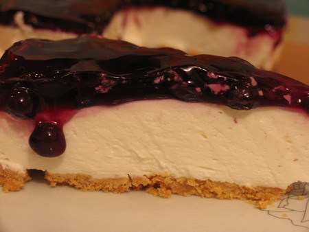 За крема разбийте яйцата със захарта и добавете крема сиренето и ванилиите. Бъркайте докато стане гладко и изсипете върху бисквитения блат.