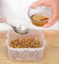 Накиснете стафидите в алкохол в продължение на най-малко 1 час, а може и 12 часа. За да направите това, поставете стафидите в малко кастронче с капак, поръсете равномерно с ракия или ром и затворете плътно с капачката.