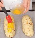 Сложете трите щолена върху хартия за печене, с която сте постлали тавичката, на разстояние един от друг и оставете за 30 минути. След това намажете отгоре с останалото яйце и печете при 170°С за около 45 минути. Охладете напълно и по желание поръсете с пудра захар.