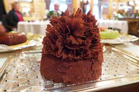 Продукти: За тестото -125 г масло, 4 яйца, 250 г пудра захар, 150 г черен шоколад, 125 г брашно; за глазурата -175 г черен шоколад, 175 г масло, 175 г захар; за украса – шоколадови пръчици.