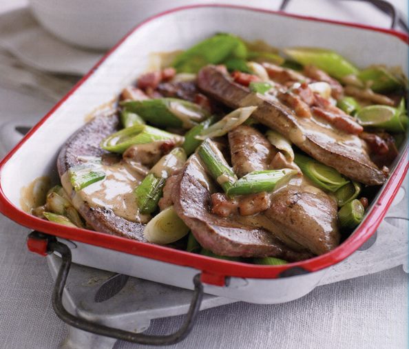Телешки дроб с праз и бекон