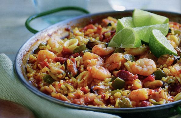 Тази великолепна паеля се приготвя бързо и има изключително богат вкус. Сервирайте с хрупкава зелена салата или зелени зеленчуци на пара.