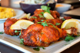 Необходими продукти: 4 пилешки бутчета, 1/2 ч.ч. кисело мляко, 1 с.л. настърган пресен джинджифил, 1 с.л. счукан чесън, сока от 1 лимон, 1 с.л. сол, подправки за маринатата -1 с.л. смлян кориандър, 1 ч.л. лют червен пипер, 2 с.л. сладък червен пипер, 1 ч.л. смлян черен пипер, 1 с.л. смлян кимион, 2 с.л. наситнен пресен кориандър или магданоз, 1 ч.л куркума, 1 ч.л. сумак.