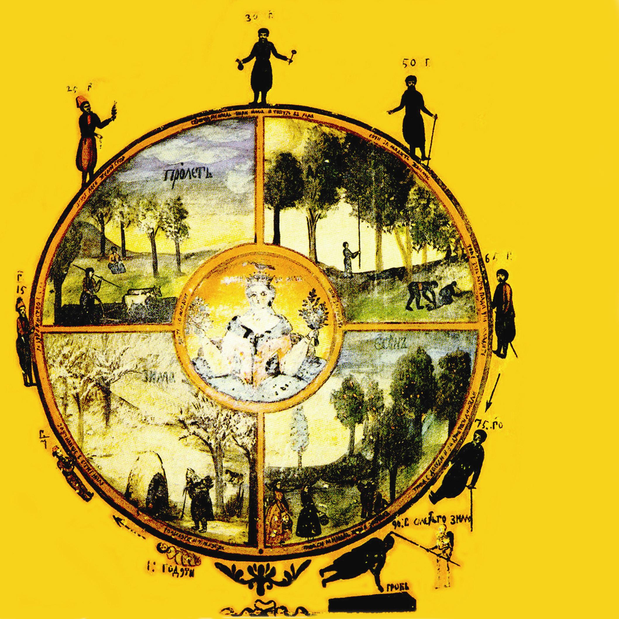 Древните магове изчисляват движението на „Колелото на съдбата” с помощта на специален инструмент, който представлява въртящи се един спрямо друг хоризонтални дискове с подвижни ленти на жребиите във вертикална плоскост (наподобява училищния модел на атома). На тези дискове схематично се изобразяват различни периоди и ритми: стихии на първо- елементите (огън, вода, ефир, земя, въздух); сферите от живота на човека(здраве, лични отношения, сфера на финансите, безопасност и т.н.); планетите (Слънце, Луна, Марс, Меркурий, Юпитер, Венера, Сатурн); основните дуални принципи на битието (тяло – душа, живот- смърт, вода – огън и т.н.); скала на времето (24 часа на диска са отбелязани с деления по 5 минути).