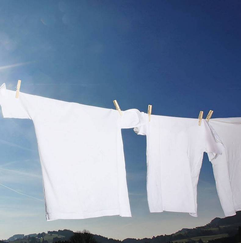 Сушенето на белите дрехи се препоръчва да става на силно слънце.