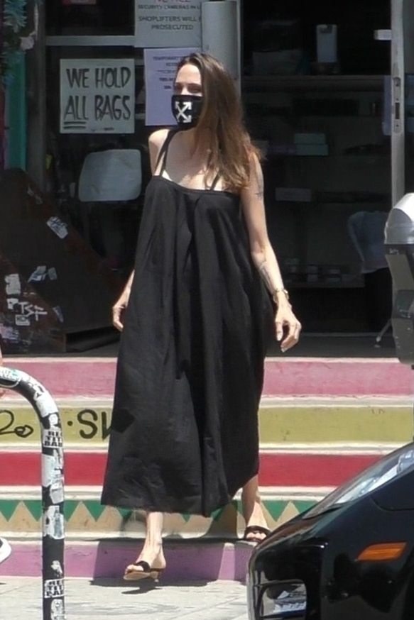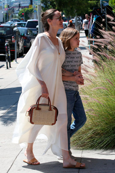 Може би затова звездата обикновено крие краката си под макси рокли? Припомнете си, за разлика от червения килим, където Анджелина е перфектна , краката ѝ винаги повдигат много въпроси. Достатъчно е да си припомним колекцията от огромни смачкани дрехи, в които тя често напускаше дома си през лятото. Феновете я наричат стилна, извън социалните събития, и небрежна понякога, а модните критици – запусната. Каним ви да погледнете как изглежда Джоли, когато мисли, че никой не я вижда. Но папараците не спят и успяват да снимат звездата в катастрофални тоалети.